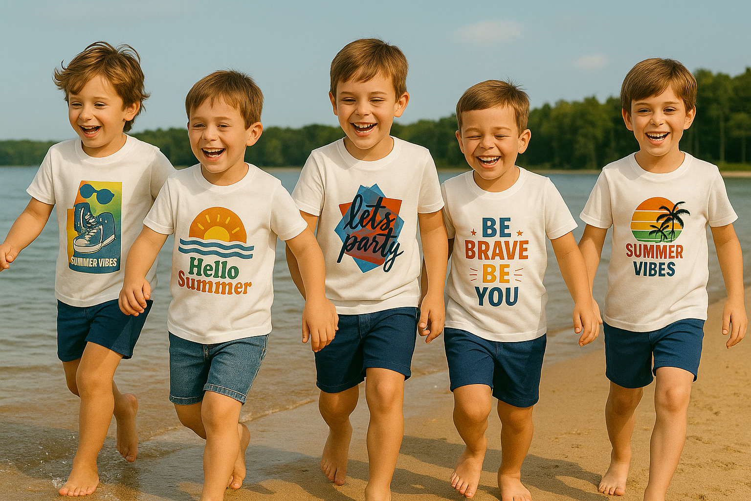 كل تيشيرت يتميز بطابعة حصرية وثبات ممتاز ضد الغسيل، ليمنح طفلك إطلالة صيفية أنيقة ومريحة.